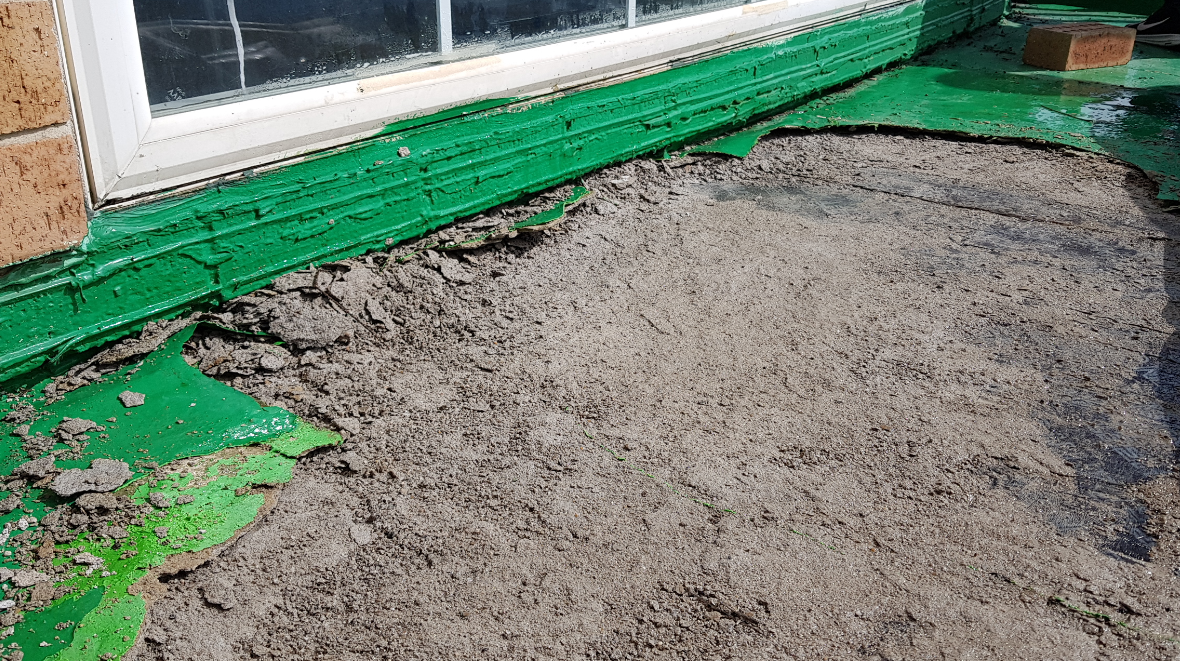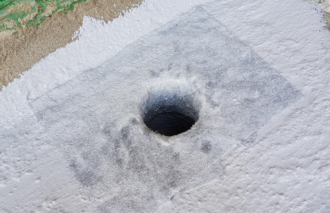 함침은 바닥에 부착한 방수 시트가 들떠서 떨어지