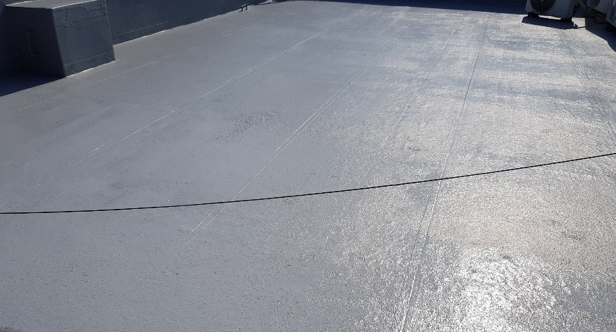 함침 작업은 옥상 바닥에 부착한 방수 시트 위에 전
