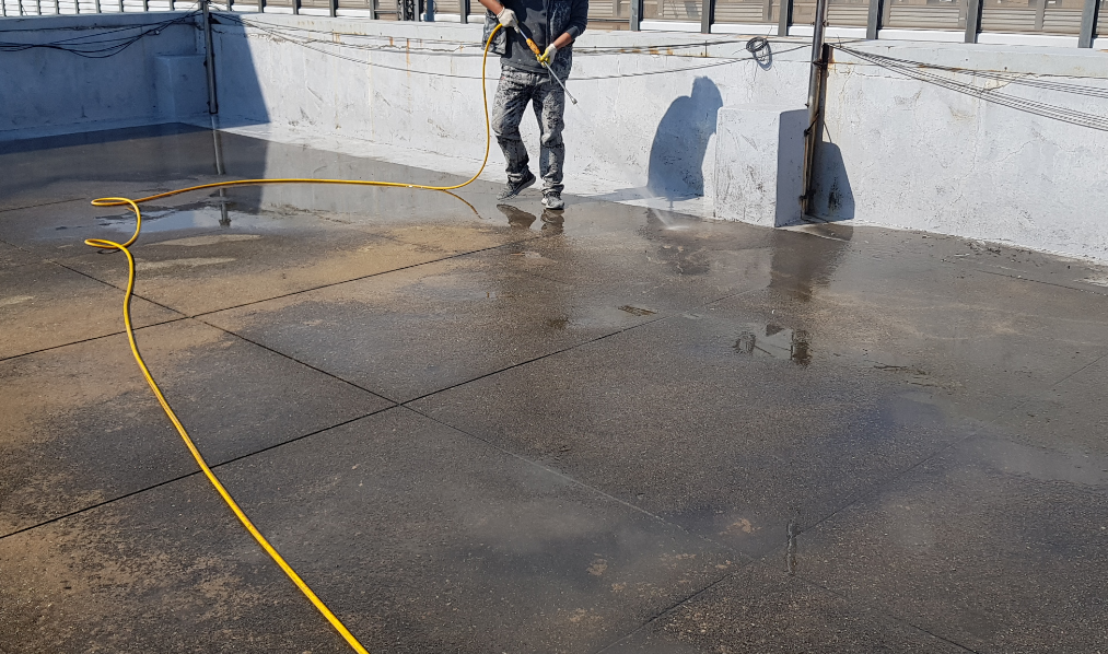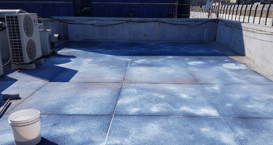 수액을 옥상 바닥 전체에 도포하는 작업으로 침투