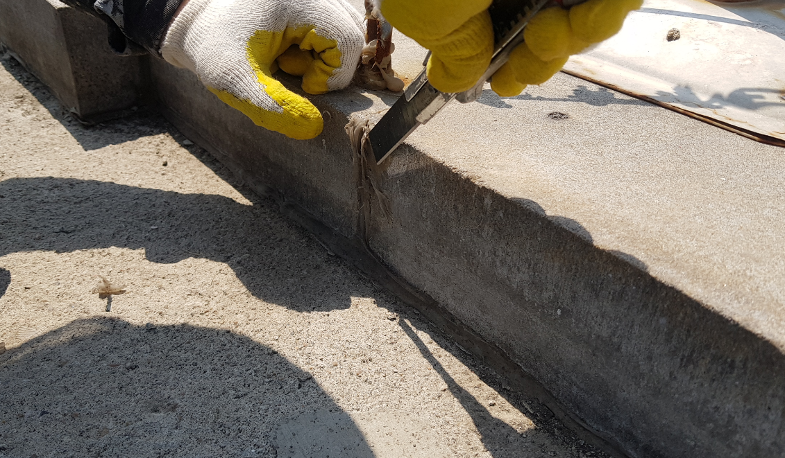 를 부착하는 작업입니다. 방수 시트가 크랙을 꽉 잡