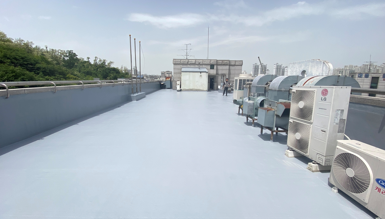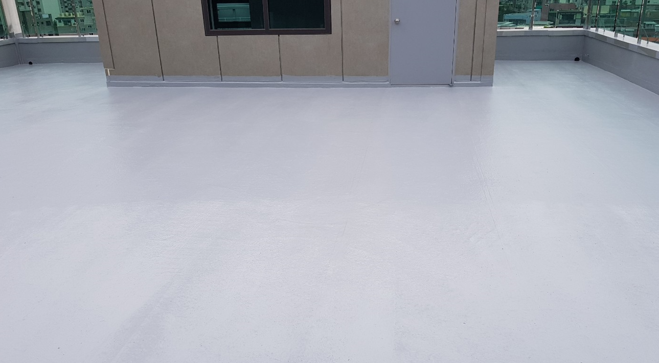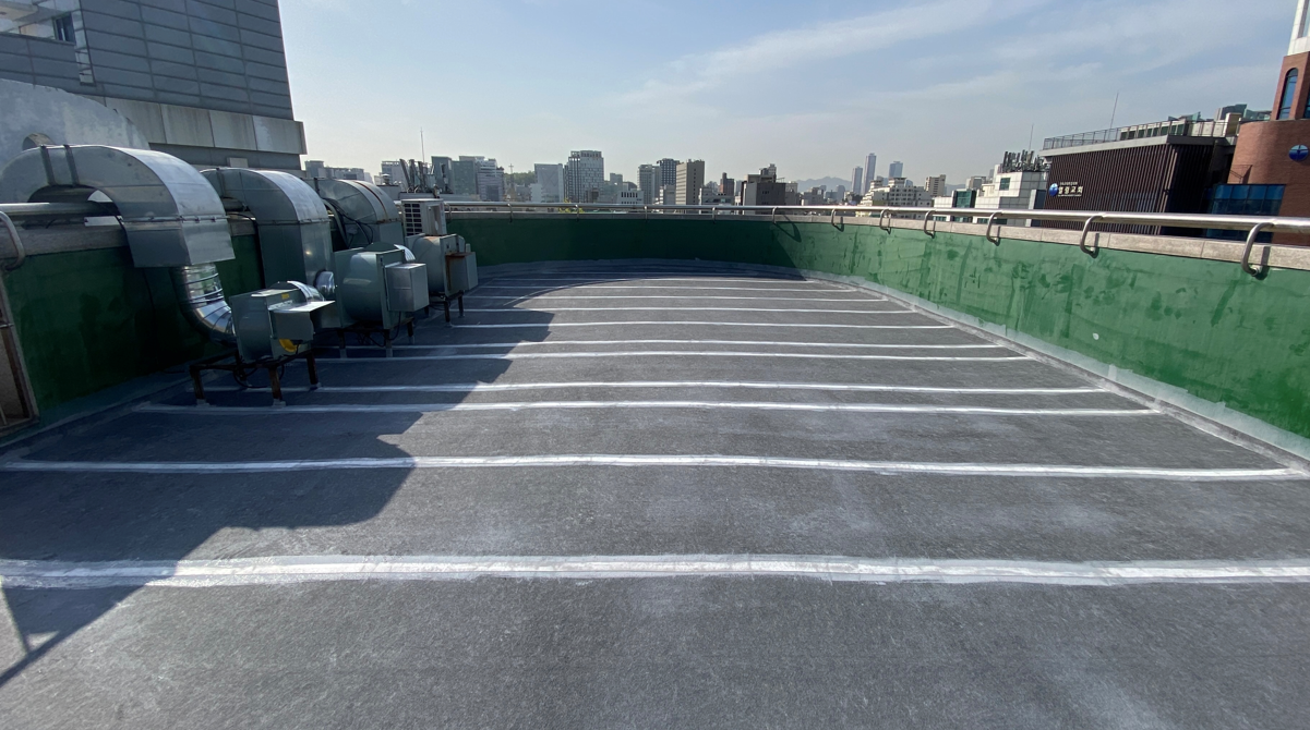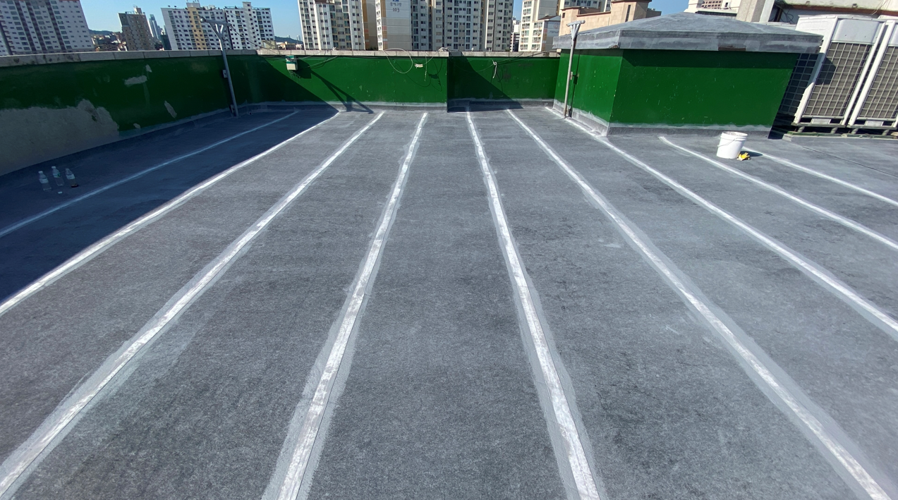 마지막 상도 작업으로 방수액과 방수시트를 함께 사용한 복합시트 방수의 모든 과정이 마무리됩니다. 침투 방수제를 옥상 방수에 함께 사용하면 튼튼하고 오래가는 옥상을 만들 수 있습니다.
