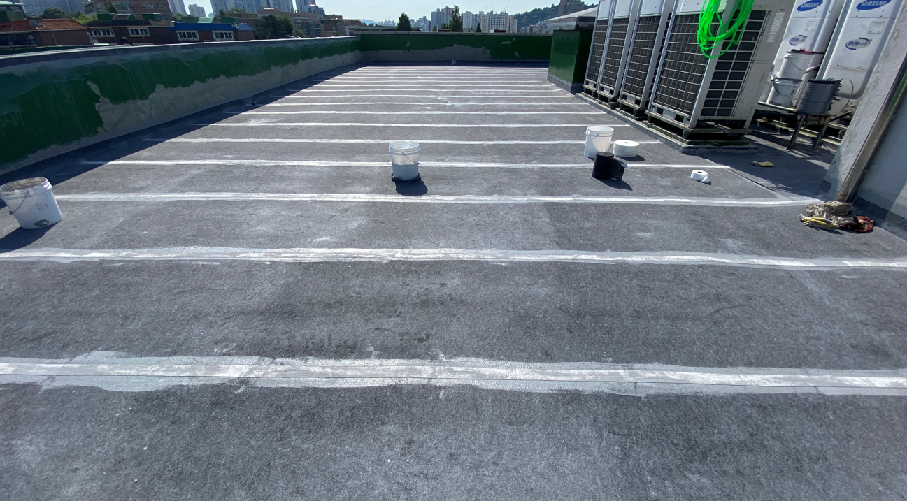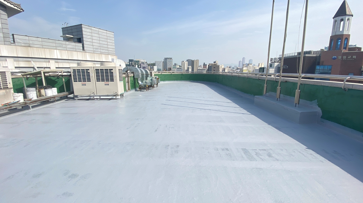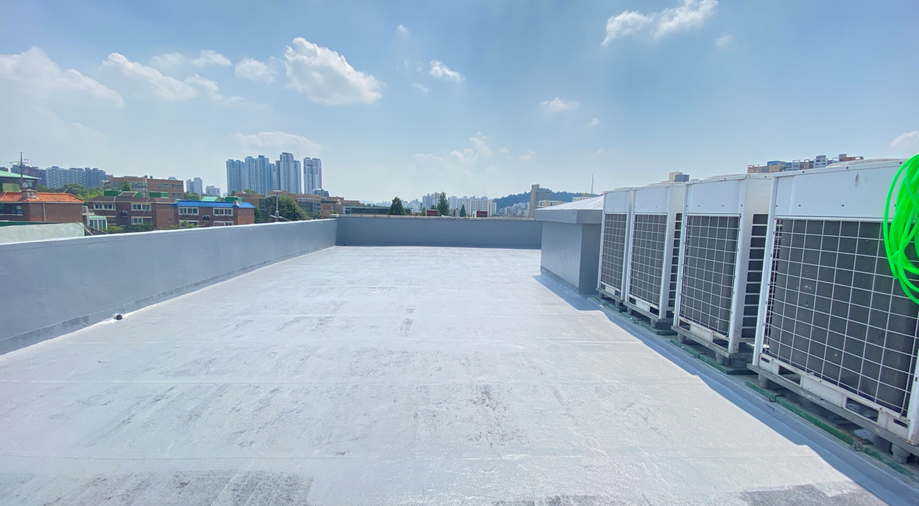 마지막 상도 작업으로 방수액과 방수시트를 함께 사용한 복합시트 방수의 모든 과정이 마무리됩니다. 침투 방수제를 옥상 방수에 함께 사용하면 튼튼하고 오래가는 옥상을 만들 수 있습니다.