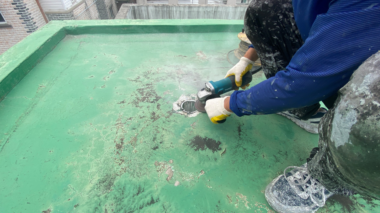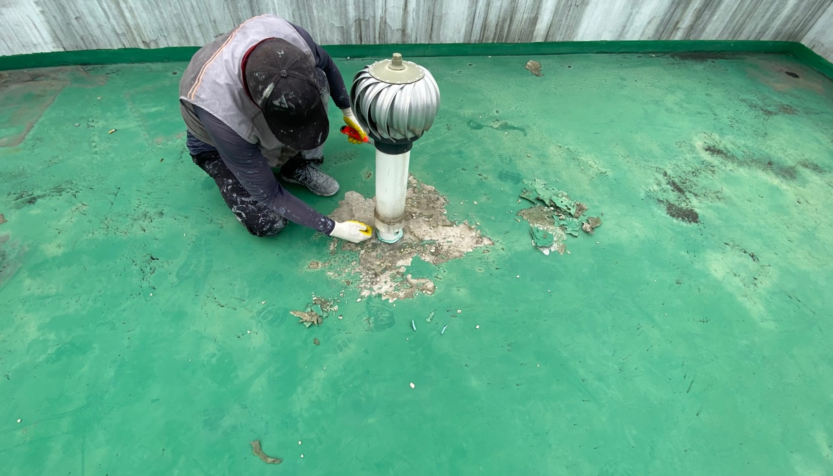 옥상 방수를 시공하기 전의 모습입니다. 우레탄으로 시공이 된 것을 볼 수 있습니다. 우레탄은 옥상에 방수 작업을 할 때 많이 쓰이지만 내구력이 약하다는 단점이 있습니다. 내구력이 약한 만큼 하자가 쉽게 발생합니다.