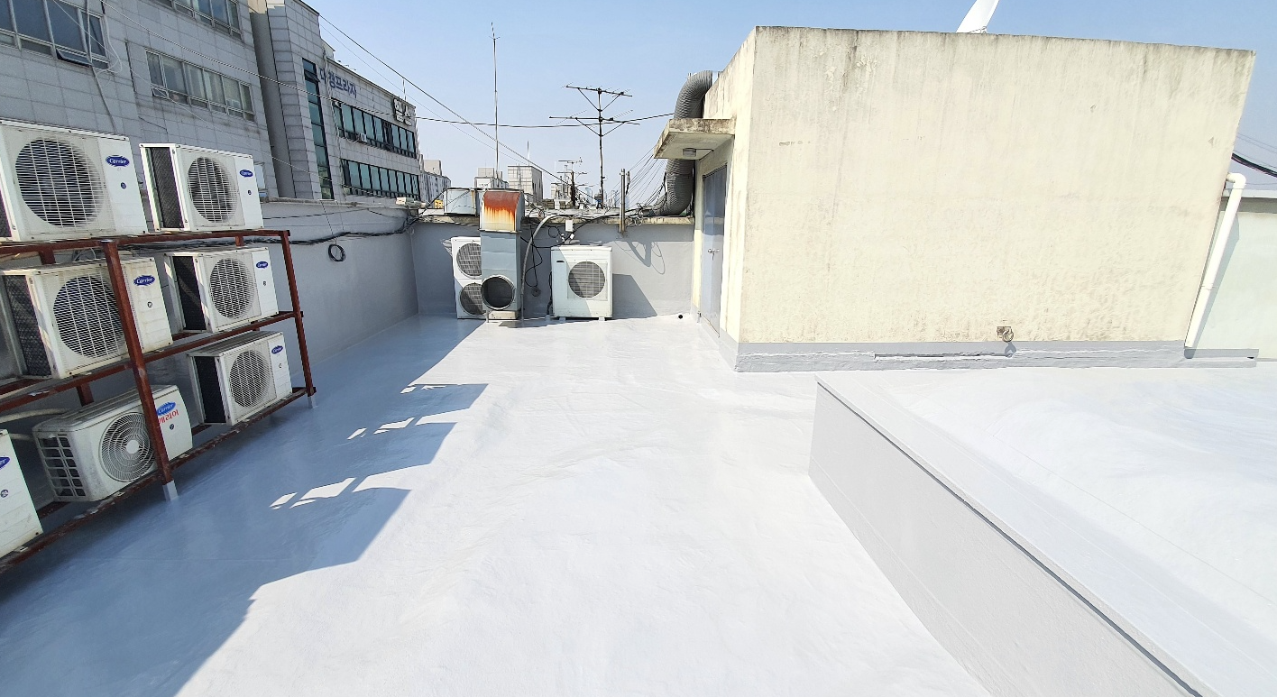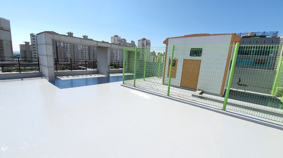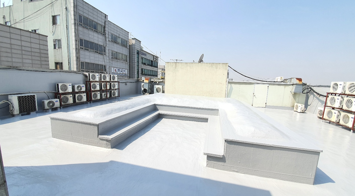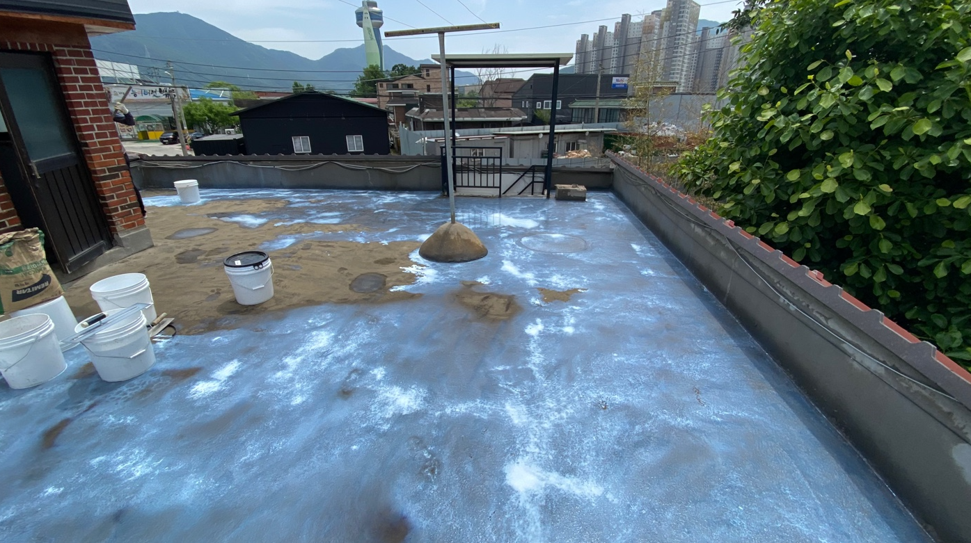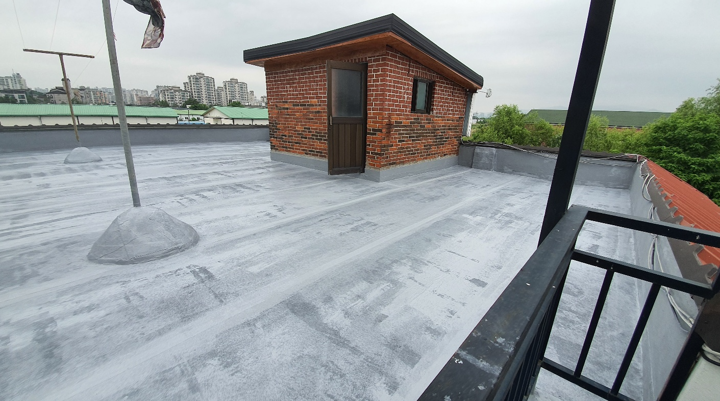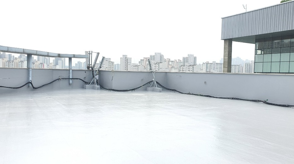방수공사의 마지막 작업으로는 상도를 진행합니다. 상도는 자외선을 차단하여 방수층을 보호하는 역할을 합니다. 이렇게 방수공사를 철저하게 해 두면 여름에 비가 많이 오더라도 누수 걱정 없는 옥상을 만들 수 있습니다. 이렇게 완성된 옥상은 반영구적인 방수 수명을 갖게 됩니다.