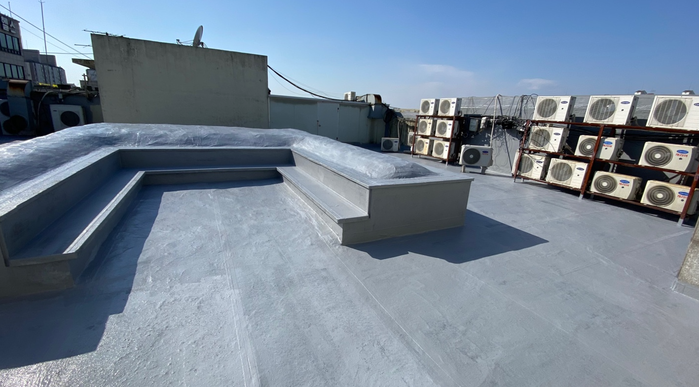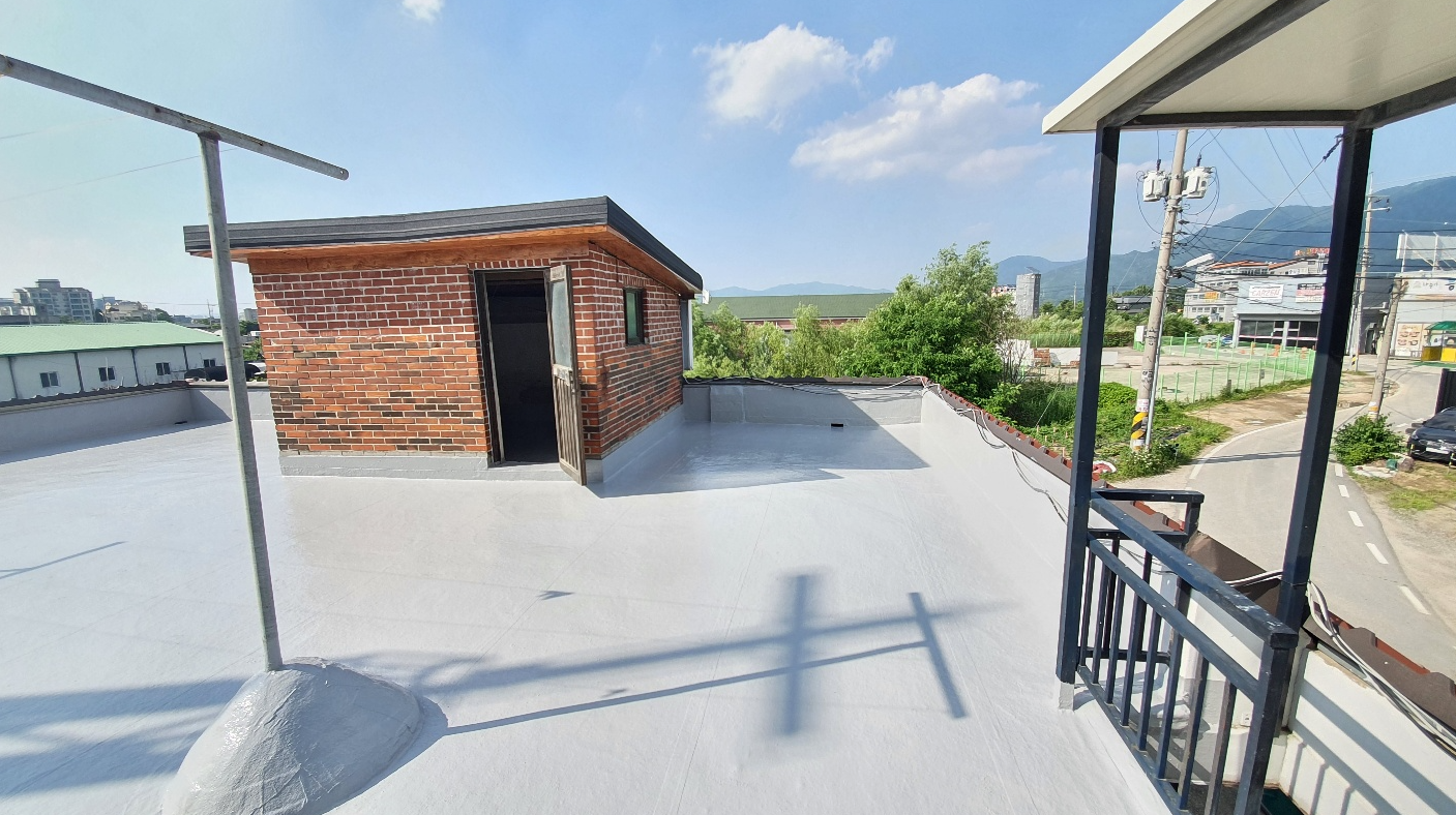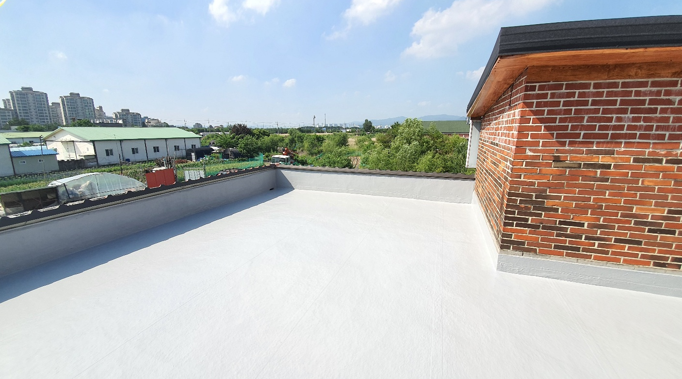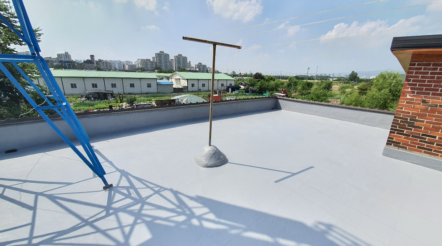 방수공사의 마지막 작업으로는 상도를 진행합니다. 상도는 자외선을 차단하여 방수층을 보호하는 역할을 합니다. 이렇게 방수공사를 철저하게 해 두면 여름에 비가 많이 오더라도 누수 걱정 없는 옥상을 만들 수 있습니다. 이렇게 완성된 옥상은 반영구적인 방수 수명을 갖게 됩니다.