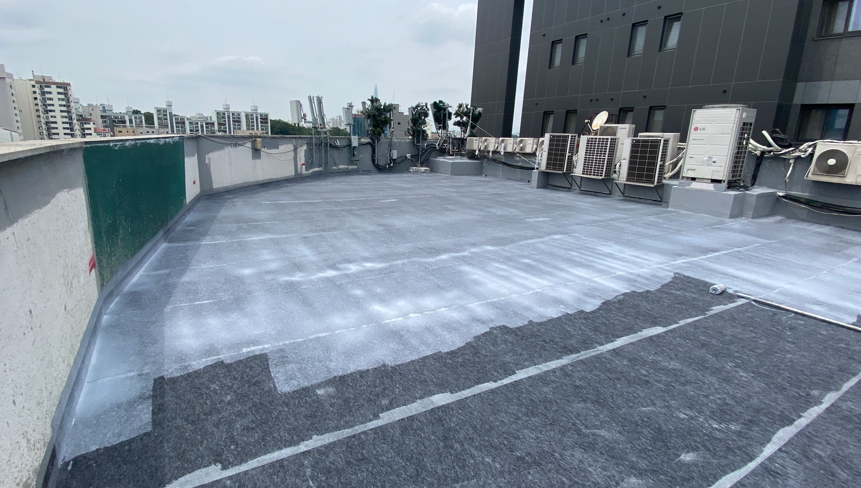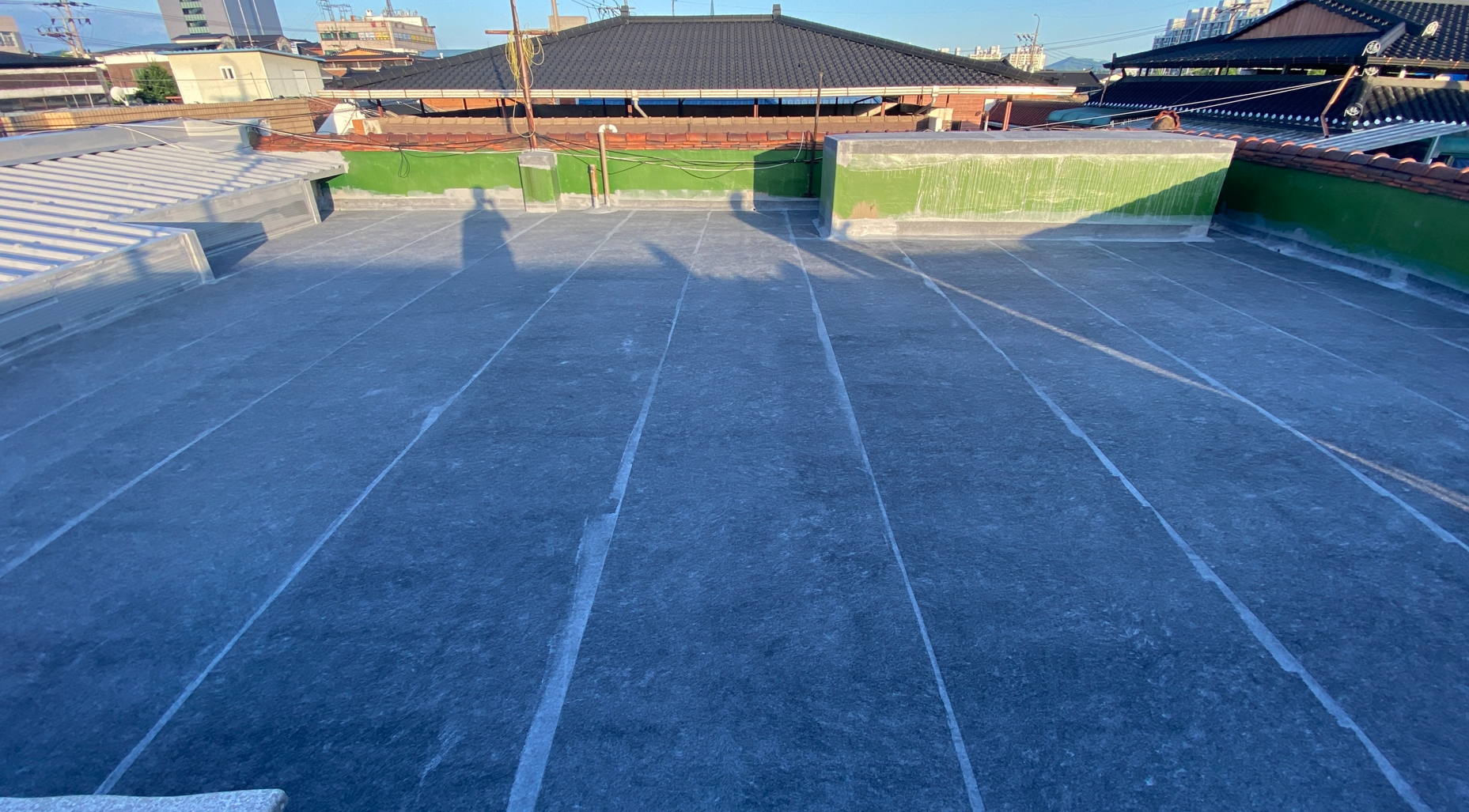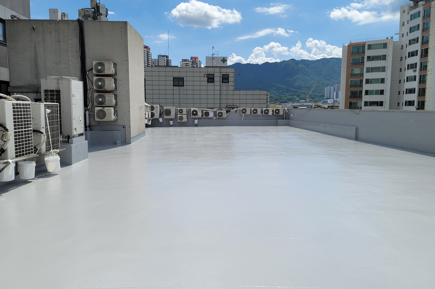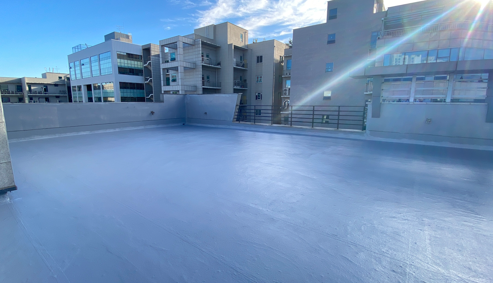 방수공사의 마지막 작업으로는 상도를 진행합니다. 상도는 자외선을 차단하여 방수층을 보호하는 역할을 합니다. 이렇게 방수공사를 철저하게 해 두면 여름에 비가 많이 오더라도 누수 걱정 없는 옥상을 만들 수 있습니다. 이렇게 완성된 옥상은 반영구적인 방수 수명을 갖게 됩니다.