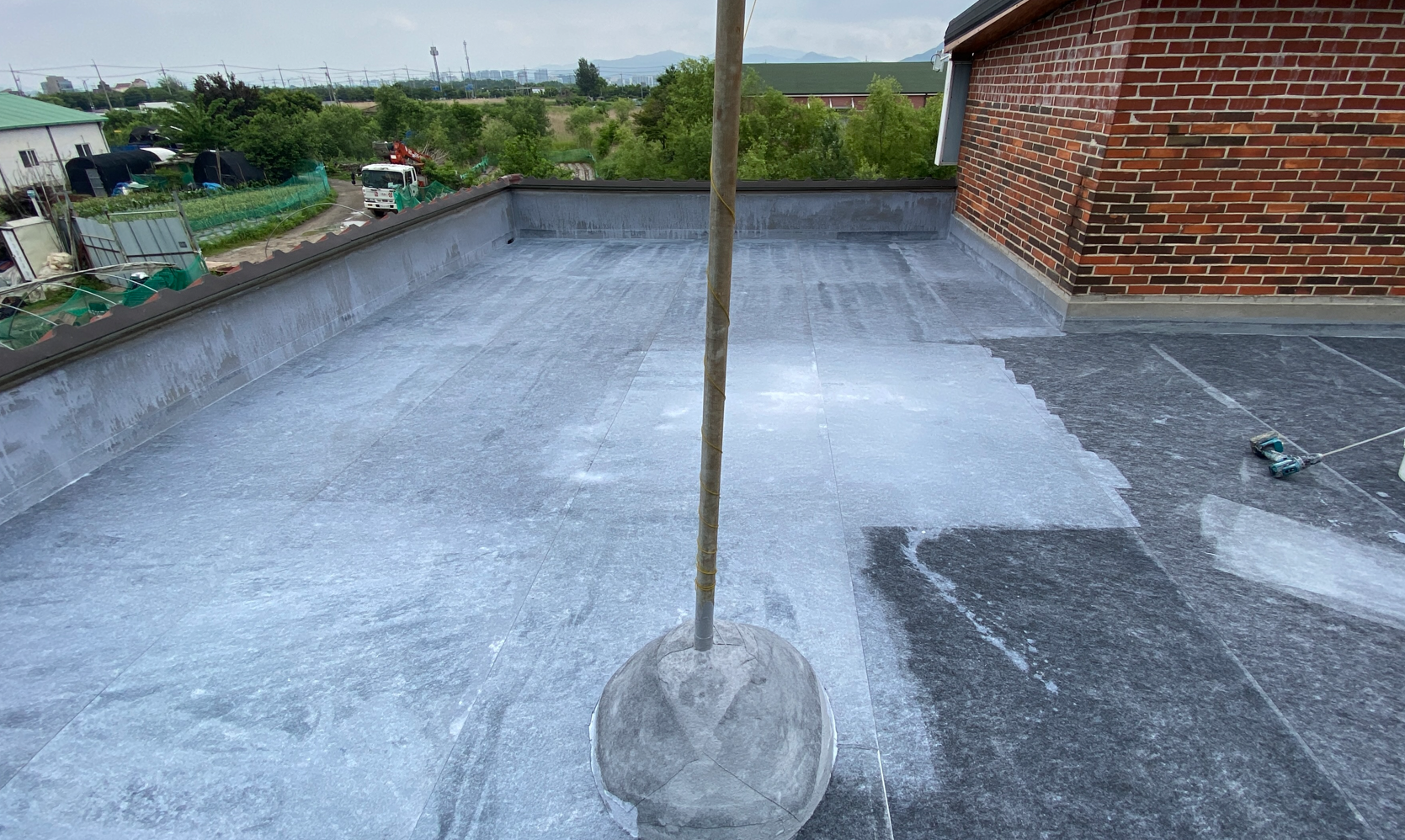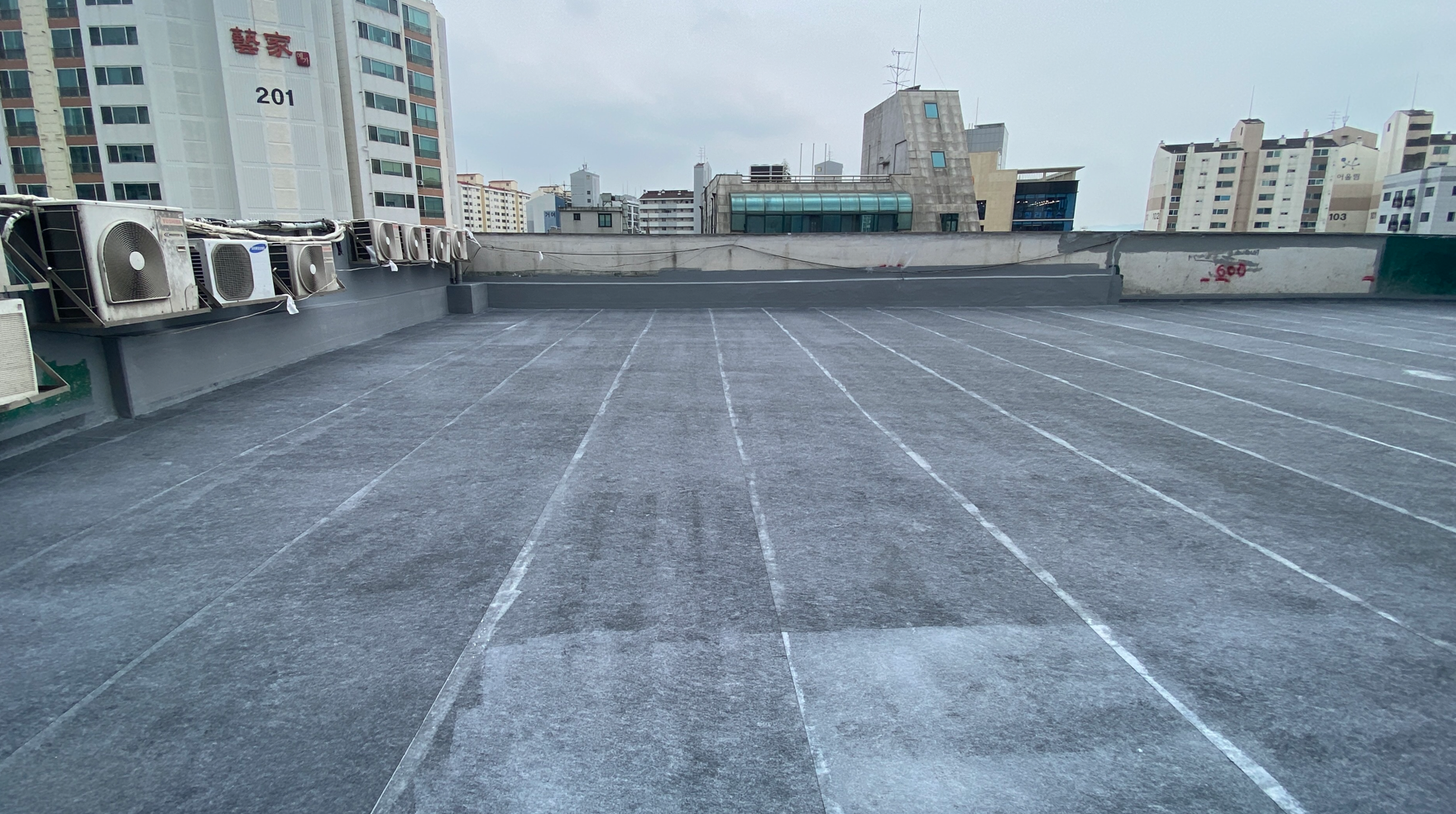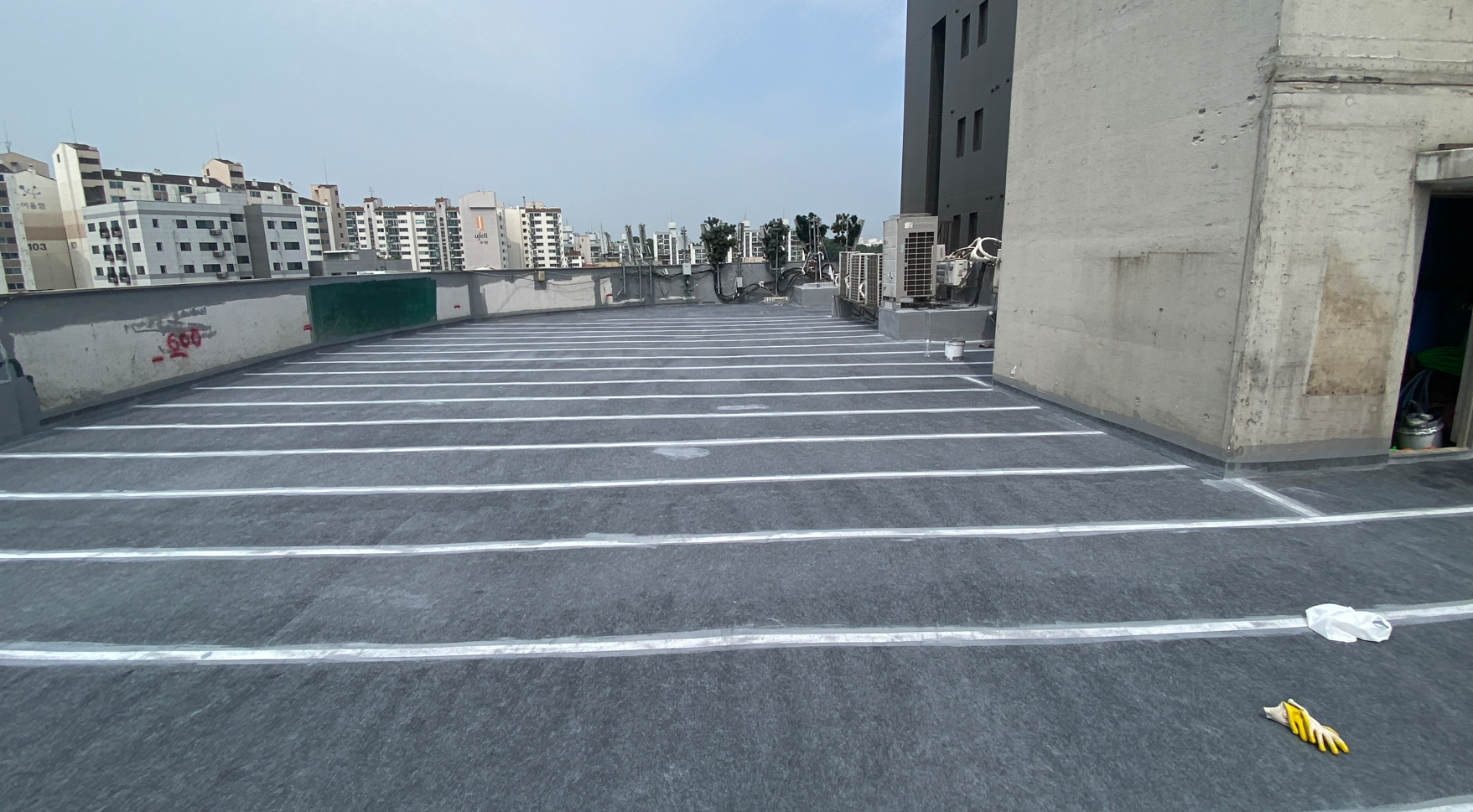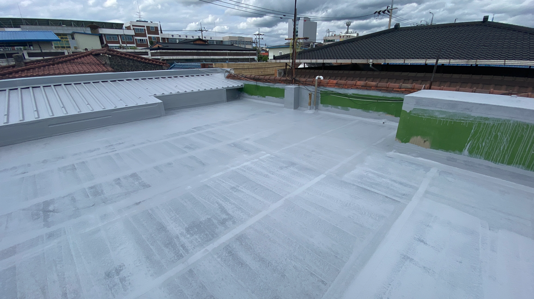 방수공사의 마지막 작업으로는 상도를 진행합니다. 상도는 자외선을 차단하여 방수층을 보호하는 역할을 합니다. 이렇게 방수공사를 철저하게 해 두면 여름에 비가 많이 오더라도 누수 걱정 없는 옥상을 만들 수 있습니다. 이렇게 완성된 옥상은 반영구적인 방수 수명을 갖게 됩니다.