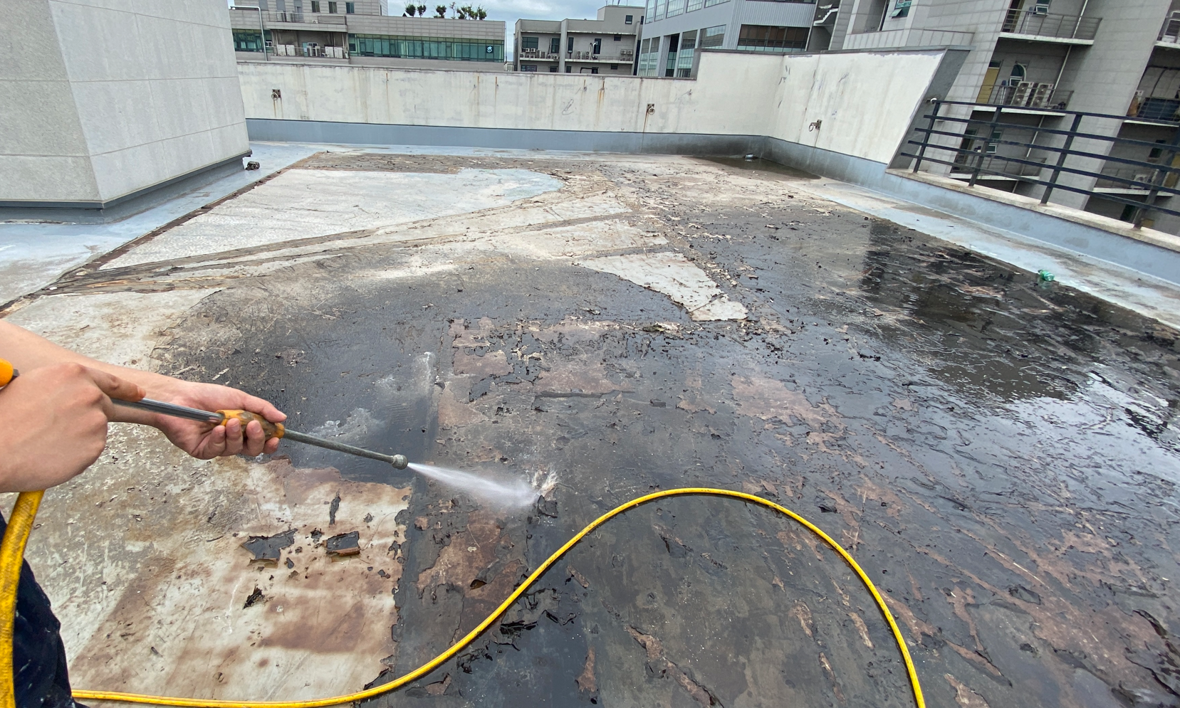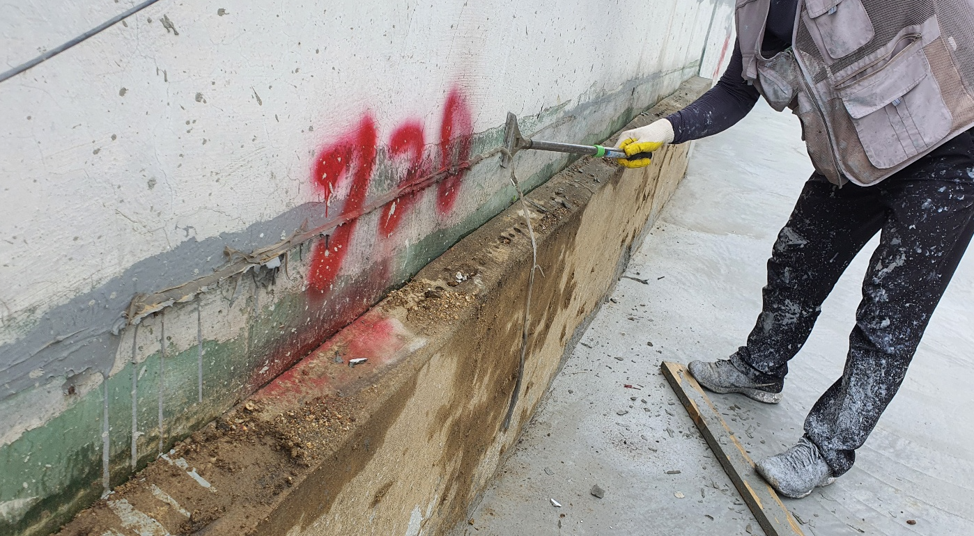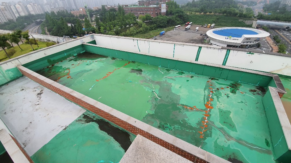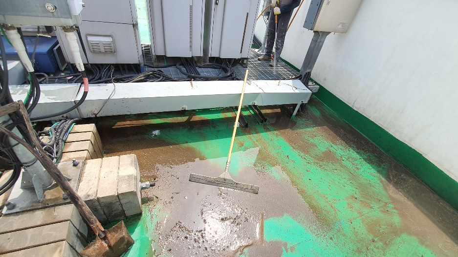 시공을 진행하는 데에 있어서 불필요한 부분이나 하자가 심해 더 이상 쓸 수 없는 곳은 모두 제거합니다. 그다음 물청소 작업을 진행합니다. 물청소는 고압 세척기로 작업하기 때문에 옥상에 쌓인 먼지와 이물질 등을 깨끗하게 청소할 수 있습니다.