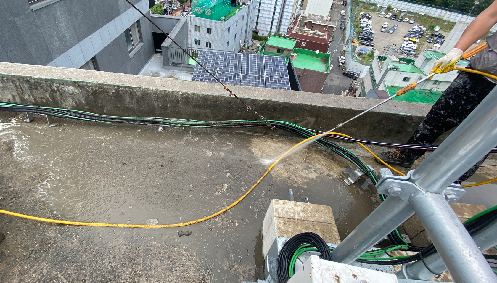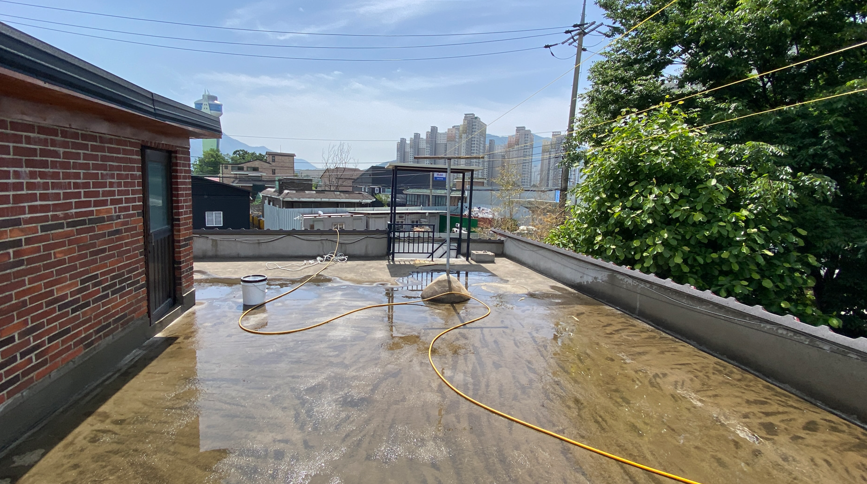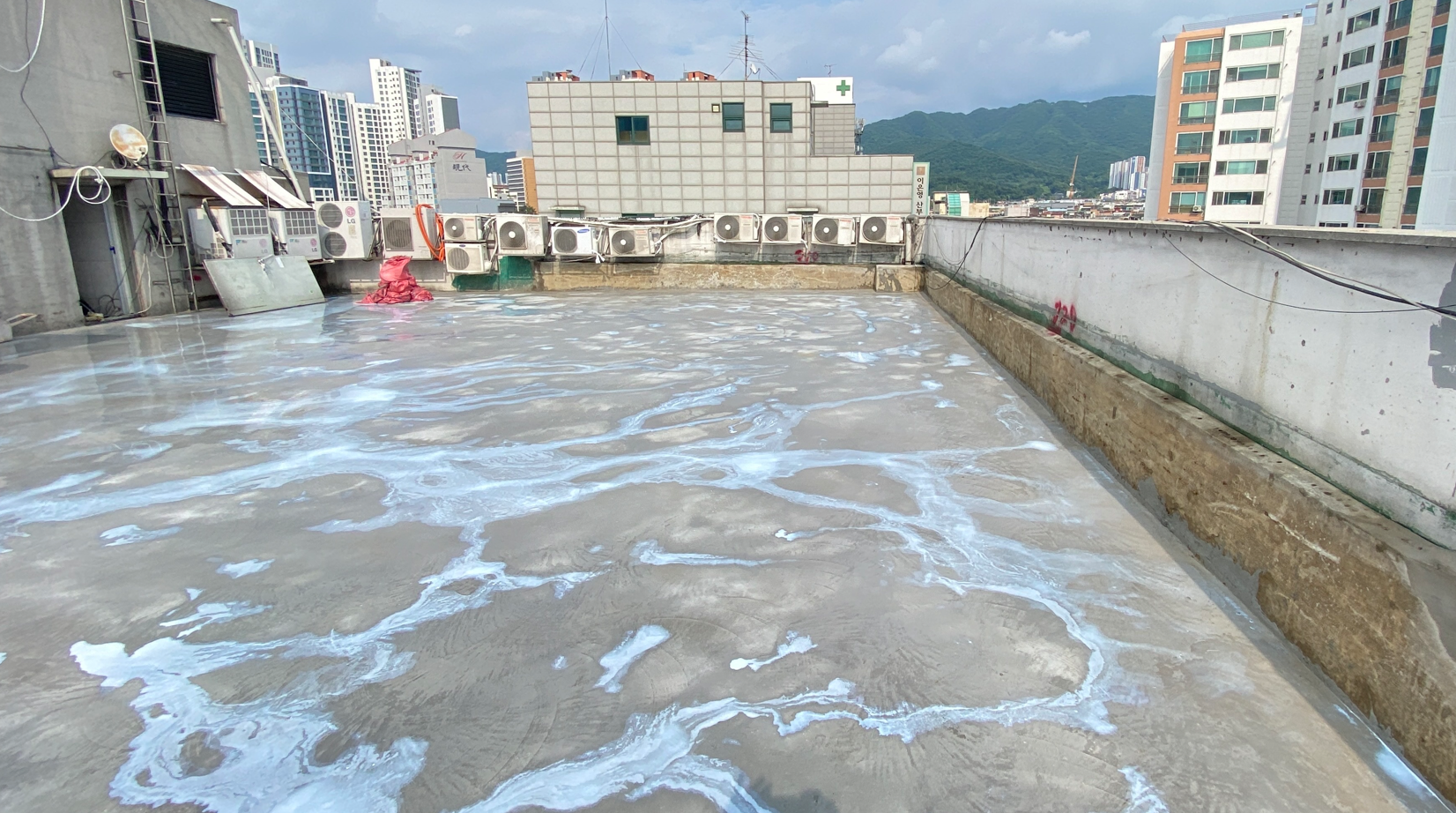 시공을 진행하는 데에 있어서 불필요한 부분이나 하자가 심해 더 이상 쓸 수 없는 곳은 모두 제거합니다. 그다음 물청소 작업을 진행합니다. 물청소는 고압 세척기로 작업하기 때문에 옥상에 쌓인 먼지와 이물질 등을 깨끗하게 청소할 수 있습니다.