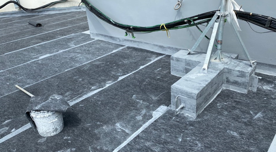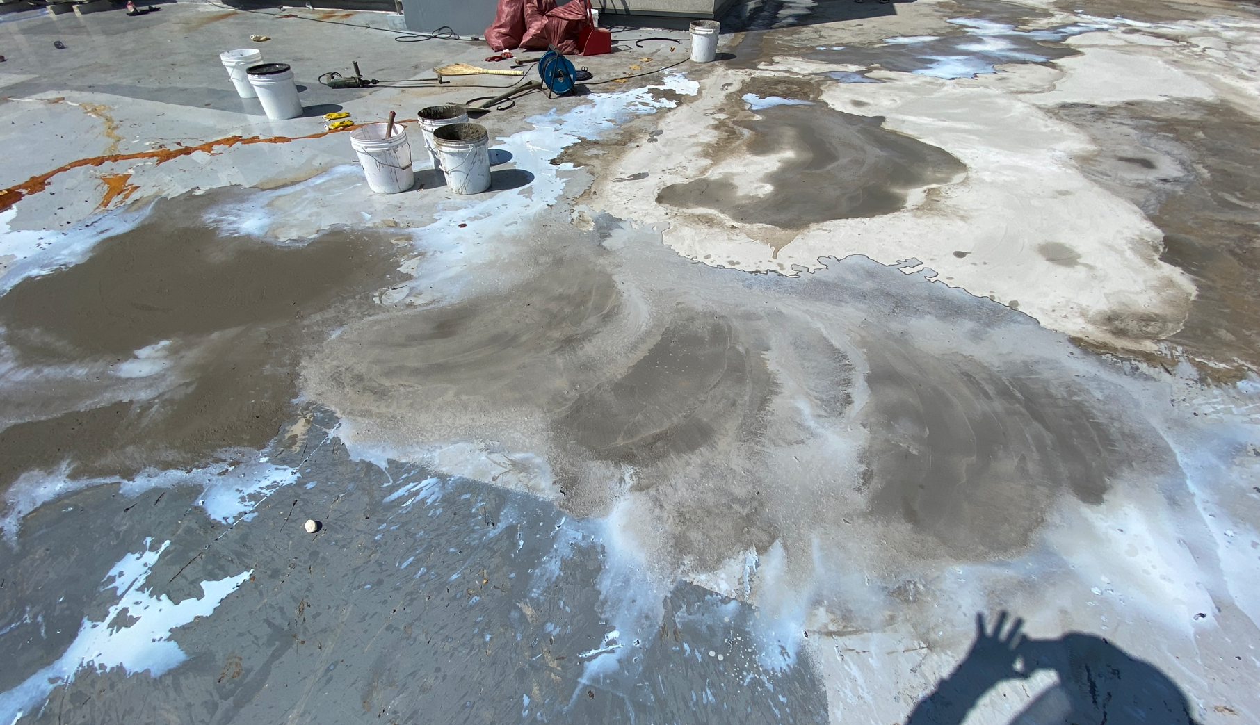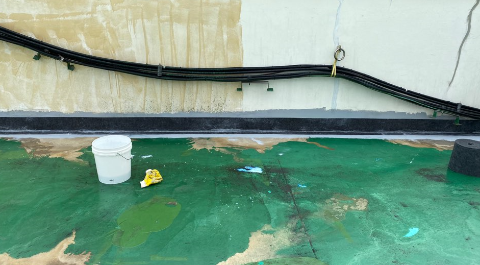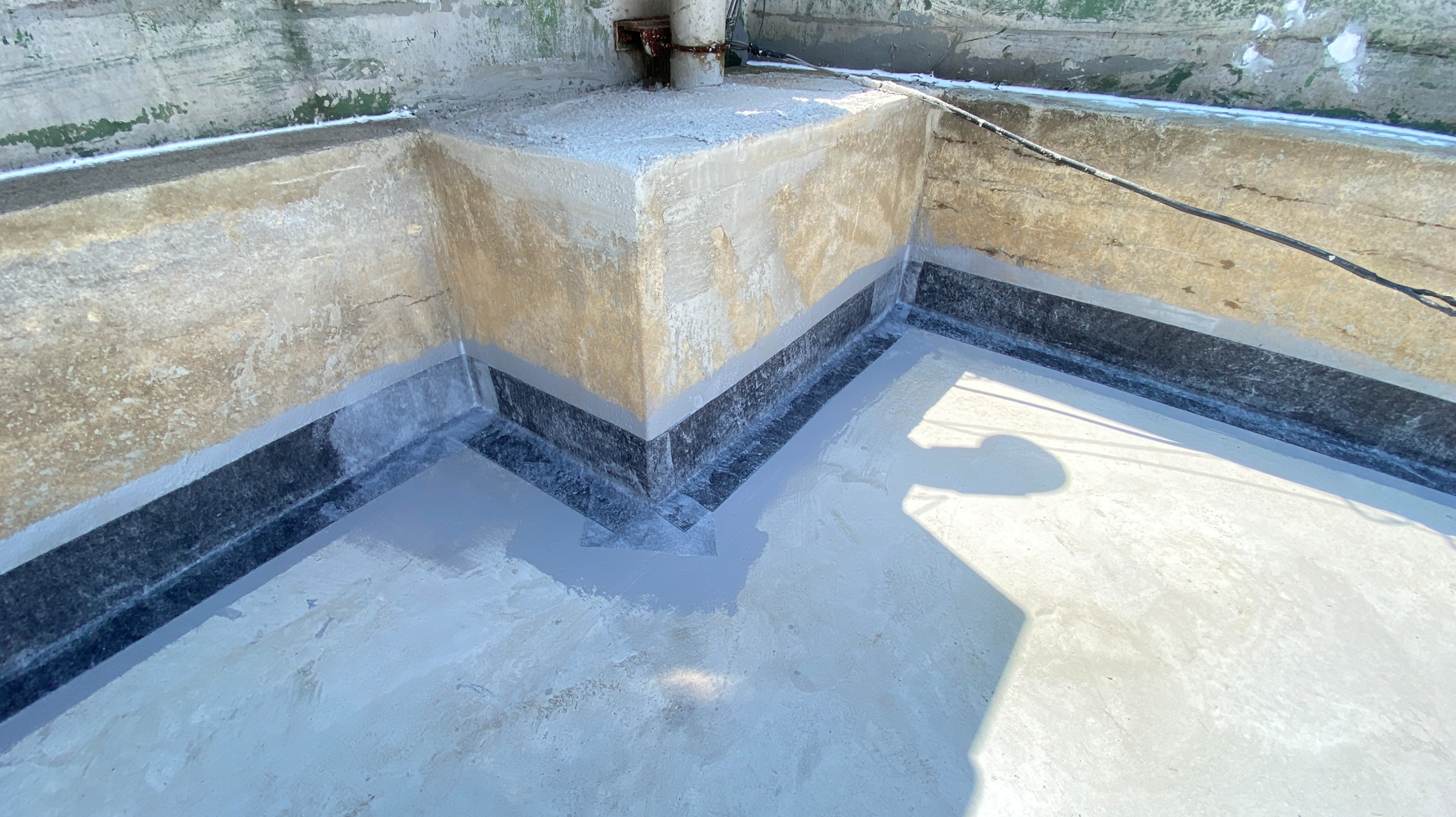 바닥에 단차가 있거나 구조물에 미장이 필요한 경우 미장 작업을 진행합니다. 미장은 침투 방수액과 몰탈을 적절한 비율로 혼합하여 작업해 바닥을 평평하게 만들어줍니다. 이렇게 바닥을 평탄화해 주면 이후 시트 작업이 조금 더 수월합니다.