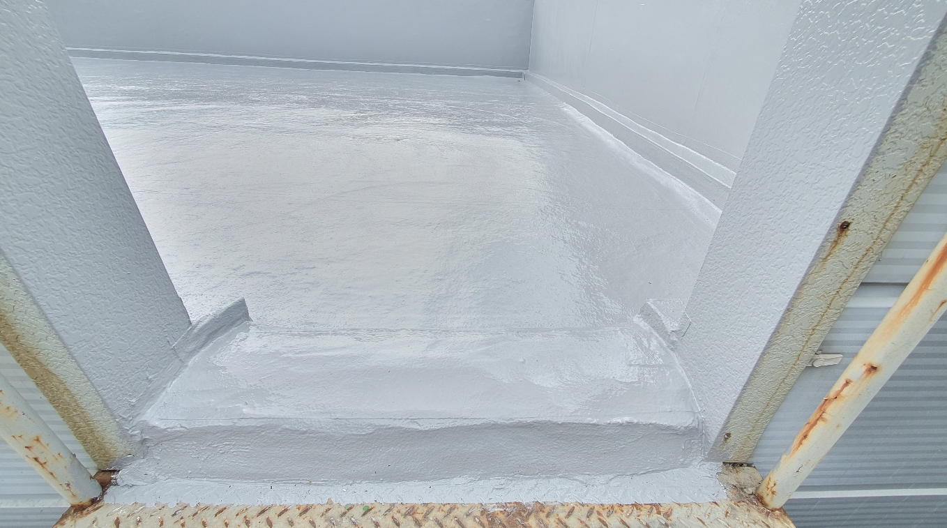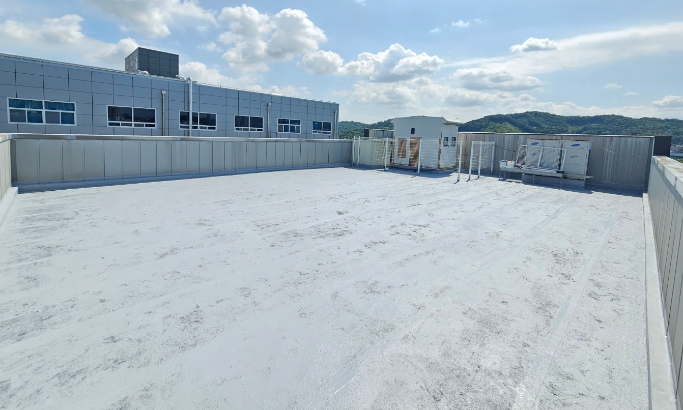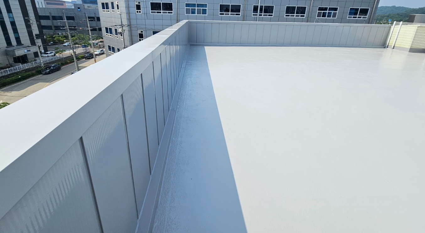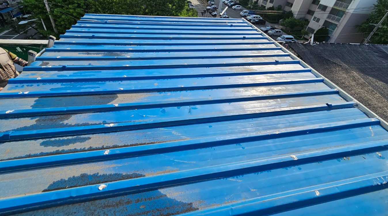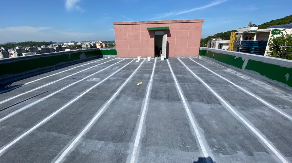 상도 작업을 마지막으로 모든 작업이 마무리됩니다. 상도는 물이 고이는 곳에는 필수적으로 해주는 것이 좋습니다. 이처럼 방수시트로 옥상의 크랙을 잡아주고 방수액을 두텁게 칠해 시공을 한다면 방수 페인트의 하자를 해결할 수 있습니다. 완성된 옥상은 이후 상처가 나더라도 그 부분만 고쳐서 계속 사용할 수 있습니다.