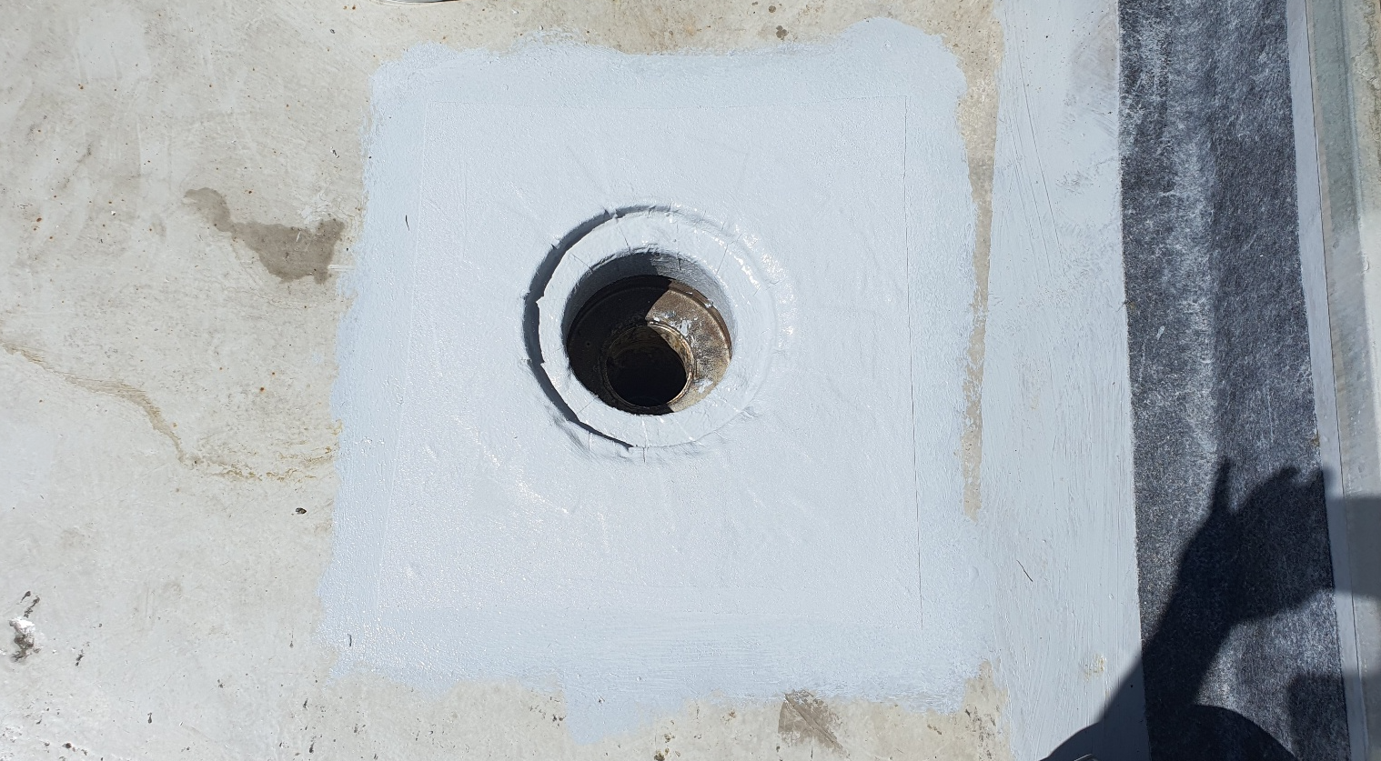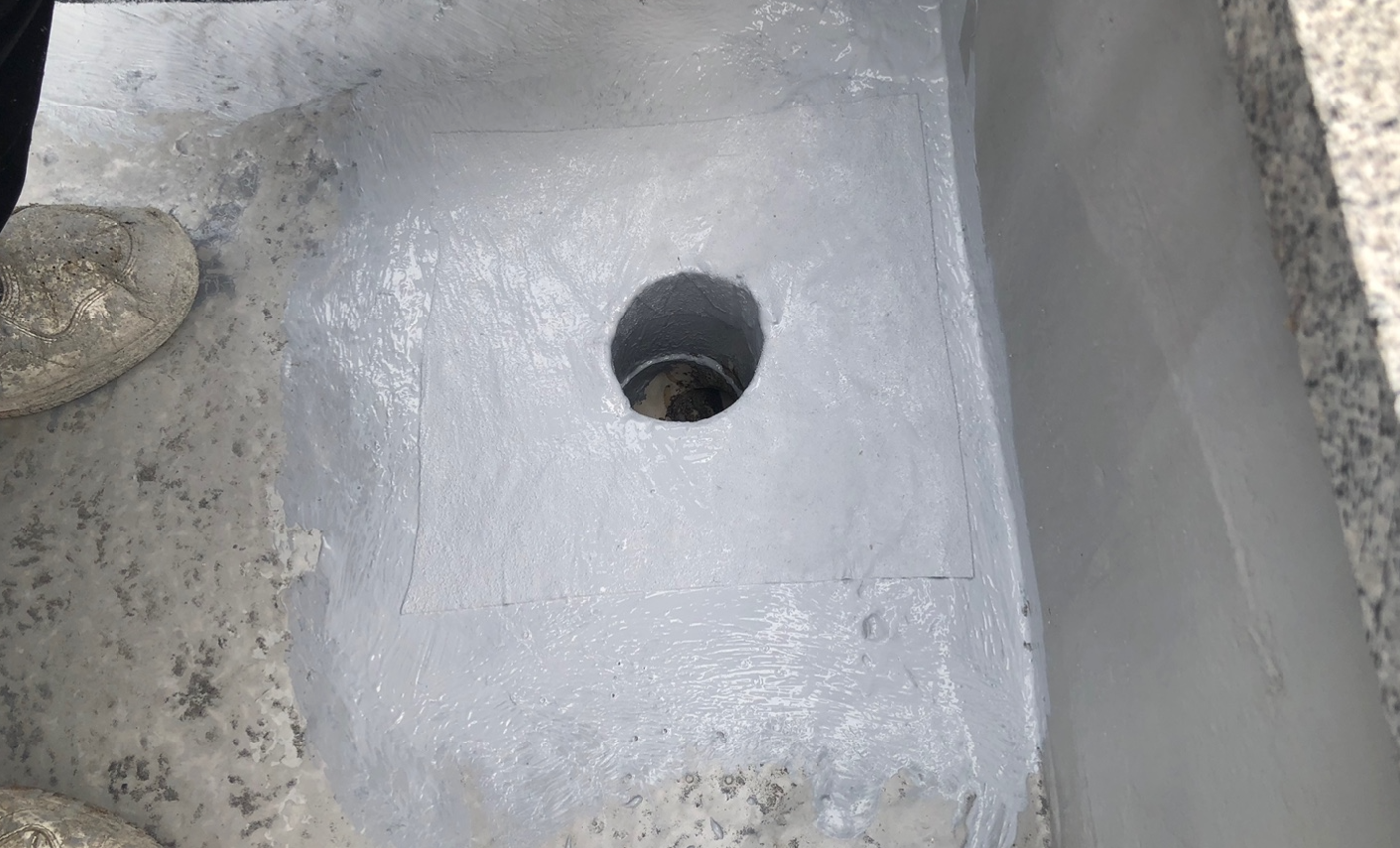 물이 흘러내려가는 우수관과 벽체와 바닥이 만나는 조인트 부분은 옥상에서 누수에 취약한 부분에 속합니다. 이렇게 누수가 일어날 확률이 높은 부분에는 방수액과 방수시트로 보강 작업을 해주는 것이 좋습니다. 방수액을 칠한 후 부위에 알맞게 방수시트를 부착하고 다시 방수액을 칠해 마무리합니다.